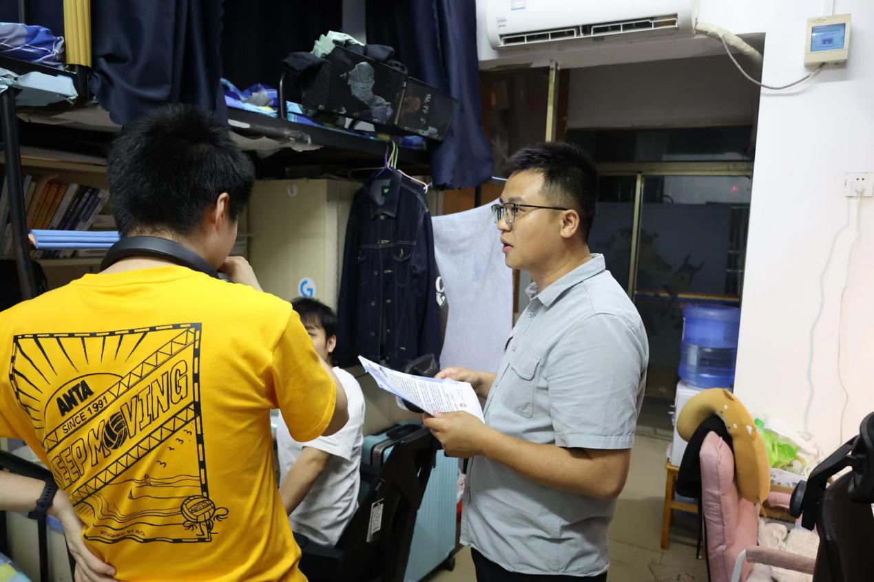 为帮助学院2024届毕业生高质量就业,5月16日晚,机械工程学院学生第四党支部支部书记赵游泳、组织委员程来带领支部学生党员到毕业生寝室开展“党员下寝促就业”活动。