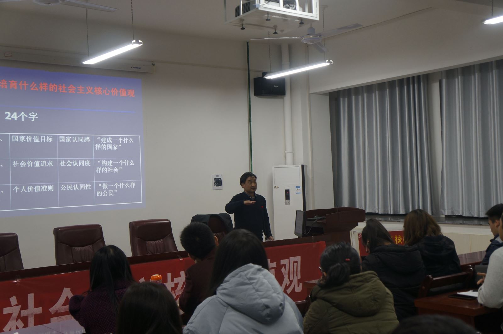 12月15日晚,机械工程学院于机械楼312会议室举行“当代大学生如何践行社会主义核心价值观”主题讲座。本次讲座由宣传部部长曾曙林主讲,学生工作办公室部分老师和16级学生聆听讲座。