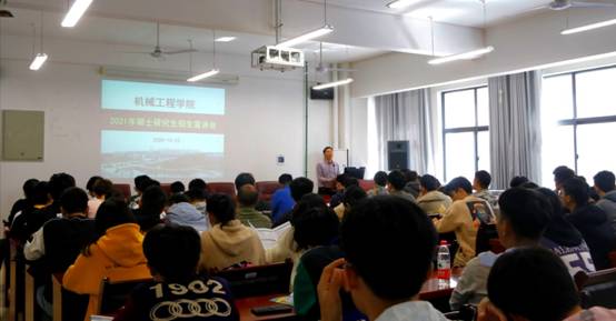 10月23日中午,机械工程学院在机械楼312学术报告厅举行2021年硕士研究生招生宣讲会,会议由学院院长魏克湘主讲,学院部分师生参加了会议。