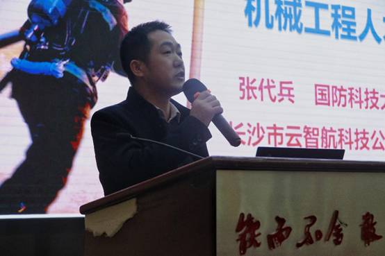 为了让大一新生及时了解机械行业的前沿动态,更好规划自己的大学生活,机械工程学院于2021年11月26日邀请了长沙市云智航科技有限公司董事长张代兵博士在图书馆一报告厅作了题为“黑硬特”科技公司对机械工程人才的新需求的专题报告。