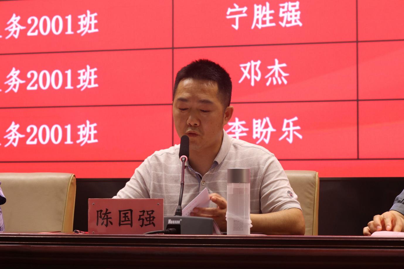 仪式伊始,覃波向大家介绍了王明安校友的优秀事迹并宣读了校友寄语,勉励所有同学立志成大器,自强不息,立志勤学习,掌握本领,立志做好人,感恩社会。王明安校友为我院机械制造工艺及设备专业87届毕业生,现任重庆新泰机械有限责任公司董事长,曾获“全国优秀乡镇企业家杰出成就奖”和“全国五一行业模范奖章”等荣誉称号。作为为学校捐款最多的校友,14年来王明安共捐赠了180余万元用于学校建设和学生奖助学金,为学校发展和学生成长成才贡献了校友力量。