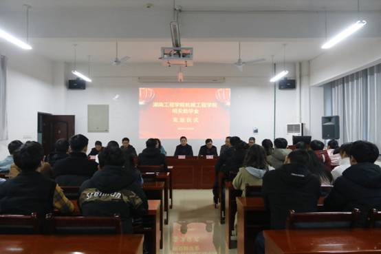 湘水欢歌,情意融融。12月8日下午,机械工程学院在机械楼312学术报告厅举行“明安助学金”颁发仪式。学校党委副书记宁立伟、校友办主任陶宏、机械工程学院领导班子成员、校友代表文彬及受助学生参加了此次仪式,仪式由学院党委副书记肖彬主持。