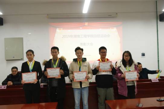 接着,肖彬宣读了受表彰学生名单,7人获“体育贡献奖”、27人获“体育功勋奖”,58人获“体育风尚奖”。与会领导为受表彰的运动员颁发了证书、纪念奖章和纪念品,现场气氛热烈,掌声雷动。