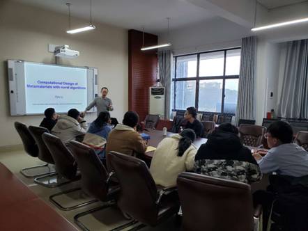 12月27日下午,汽车动力与传动系统湖南省重点实验室在机械楼311会议室开展了题为"Computational Design of Metamaterials with Novel Algorithms(基于高性能计算方法的超材料设计)"学术报告会。报告会由Teesside University高级讲师Li Quan-bing Eric 主讲,机械工程学院院长魏克湘主持报告会,部分老师与研究生参加。报告会结束后,大家就学习和科研过程中所遇到的相关问题进行了热烈讨论与交流。