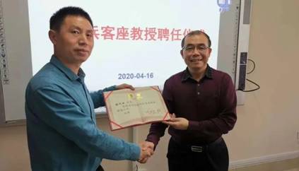 2020年4月16日,我校在机械工程学院311会议室举行客座教授聘任仪式,云智航科技董事长张代兵博士受聘为我校客座教授。副校长刘小波、人事处处长吴振顺、机械工程学院院长魏克湘、学院特聘教授杨帆、湖南萌境智能董事长张波出席了聘任仪式。