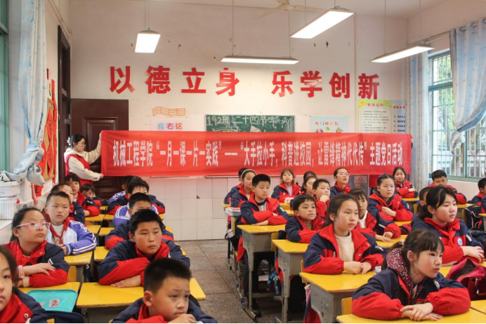 近日,机械工程学院学生党支部以“党建带团建”,联合学校智能装备科普基地,在湘钢一校开展“大手拉小手,科普进校园,让雷锋精神代代传”主题党日活动。