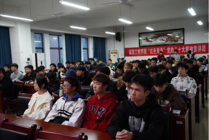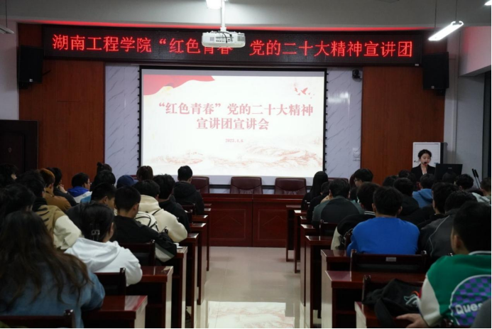 为深入学习宣传贯彻党的二十大精神,引导广大青年学子紧跟党的先进思想步伐,4月6日晚,湖南工程学院“红色青春”党的二十大精神宣讲团开展了校内第二次专题宣讲。本次宣讲由湖南工程学院校团委主办,机械工程学院团总支承办。校团委和机械工程学院老师出席宣讲会。