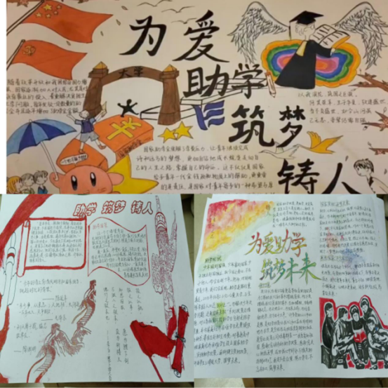 本次大赛面向全院学生征集作品。大赛开展以来,学院积极组织动员学生绘制“为爱助学”主题相关的手抄报及制作对应的讲解视频,共收到参赛作品18个。手抄报内容涵盖国家资助政策、助学金评选办法以及感恩教育等。评委通过比对各参赛作品与“资助”主题的贴合度,以及讲解视频关于“资助”的认知深度,经过初选和复选,最终机设2205班、超级信贷组、机设2206班等8个小组获奖。