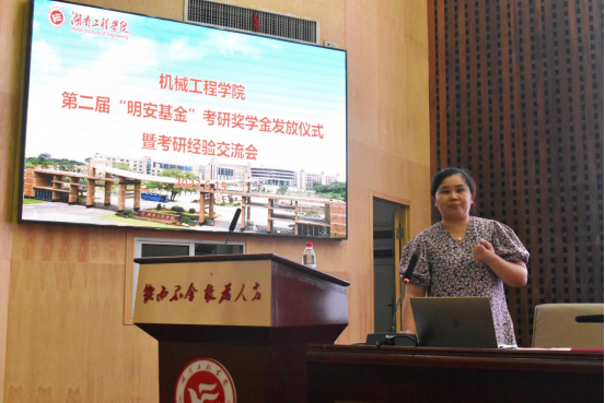 6月15日下午,机械工程学院在图书馆第一报告厅举办第二届“明安基金”考研奖学金发放仪式暨考研经验交流会。湖南工程学院党委委员、副校长魏克湘,机械工程学院院长陈国强、党委书记覃波、副院长程玉兰、邹鸿翔,获奖学生以及20、21级学生近200人参加活动,学院党委副书记肖彬主持颁奖典礼。