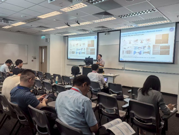 邹鸿翔教授和刘胜副教授担任“Energy harvesting and self-powered wearable systems”专题主席。会上,刘胜副教授作题为“Hierarchical rGO-based triboelectric sensors enable motion monitoring and trajectory tracking”的邀请报告,介绍了一种新型柔性摩擦电传感器(HG-FTS),其输出电压达129V,功率密度约0.5 W/m²,可精准监测人体生理信号并实现智能交互,在医疗监测、人机交互等领域具有重要应用价值。朱月月博士作“Morphing compliant wave energy harvesting vehicle”口头报告,提出一种无系泊波浪能捕获系统,通过柔性机构转换波浪能驱动发电,显著提升低频波浪条件下的能量转换效率,为海洋物联网设备供电提供了创新解决方案。