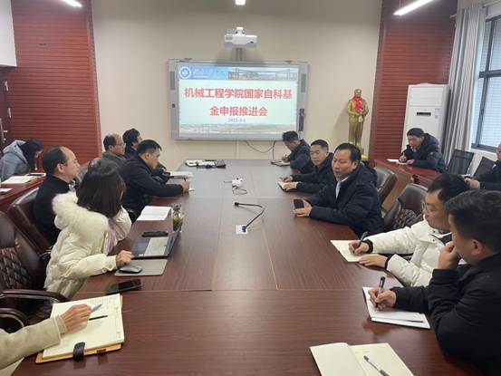 为推进学院2022年国家自然科学基金申报工作,机械工程学院于3月1日下午,在机械楼311会议室召开2022年国家自然科学基金申报推进会。会议由学院院长陈国强主持,学校党委委员、副校长魏克湘和学院副院长邹鸿翔出席本次会议,学院拟申报国家自然科学基金的老师参加了此次会议。