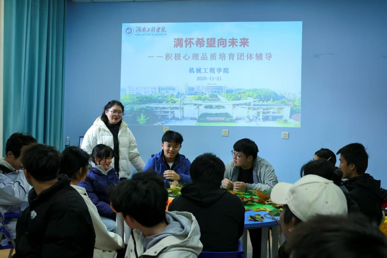 为促进学生间的交流与协作,进一步增强团队凝聚力,11月21日中午,机械工程学院在书院路校区团体辅导活动室举办了以“满怀希望向未来”为主题的团体辅导活动。本次活动由学院辅导员喻艳主持。